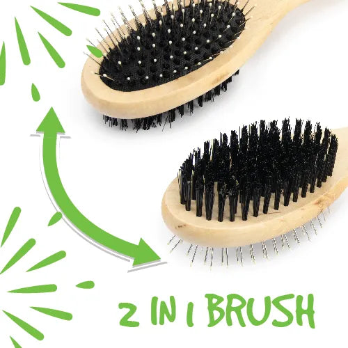 Discover the versatility of our double oval brush, a must-have grooming tool for goat enthusiasts. One side features large, safety-capped pins that effortlessly detangle dense fur without causing any harm to the skin. Flip it over, and you have a brush that brings out a silky, shiny, and tangle-free coat.